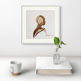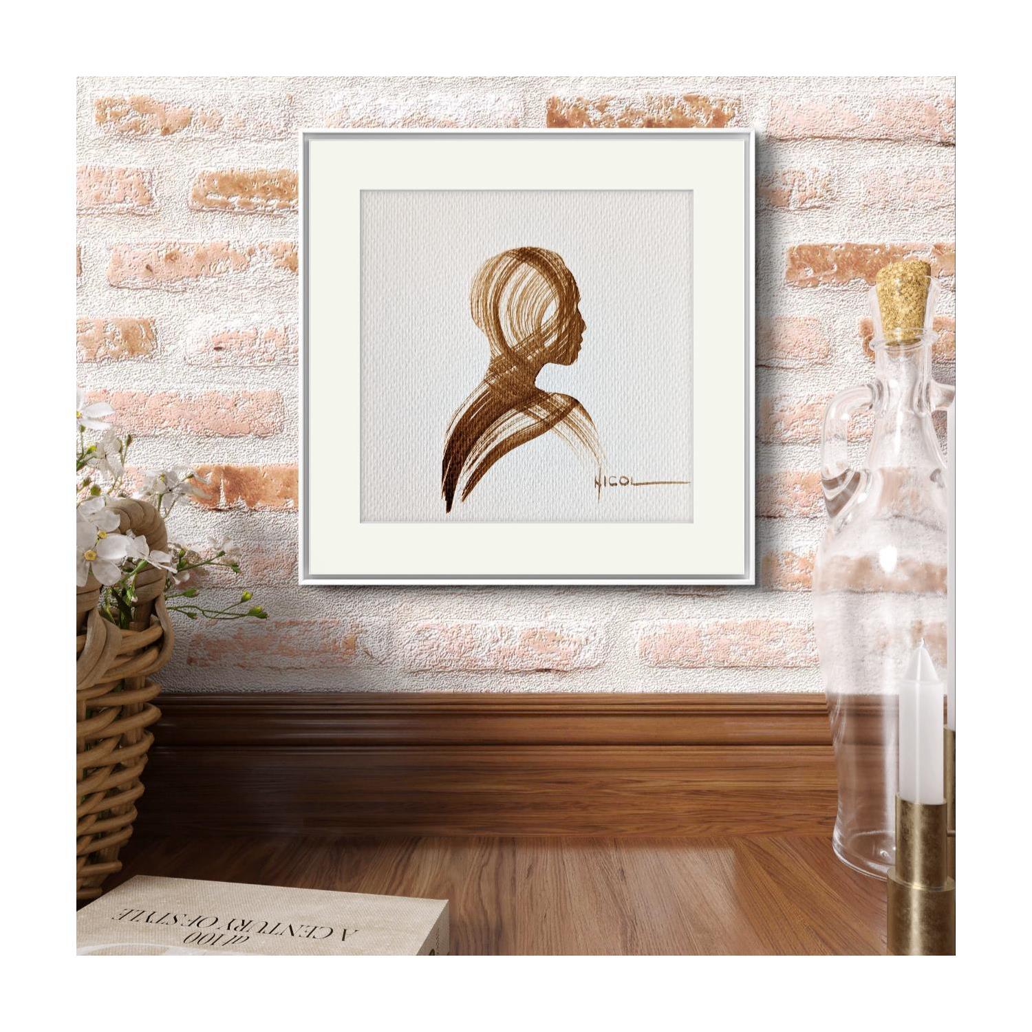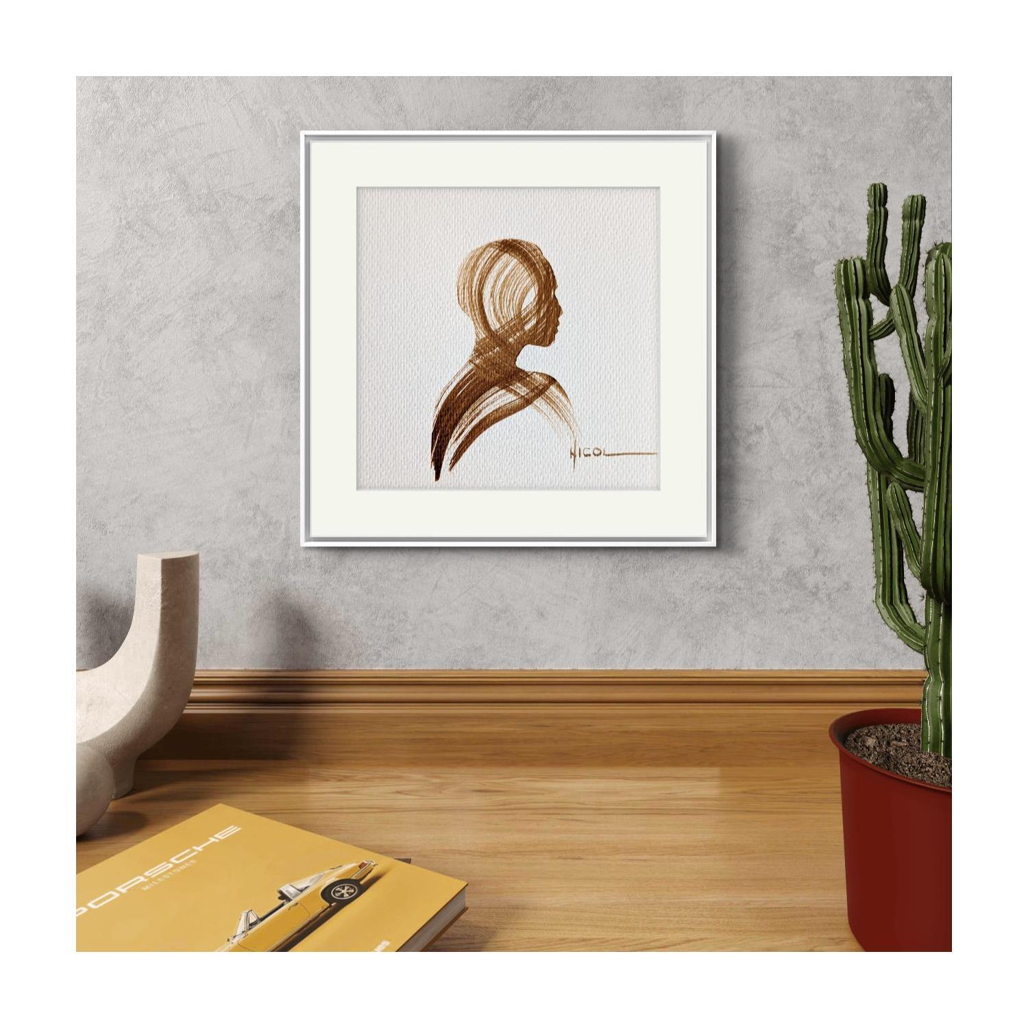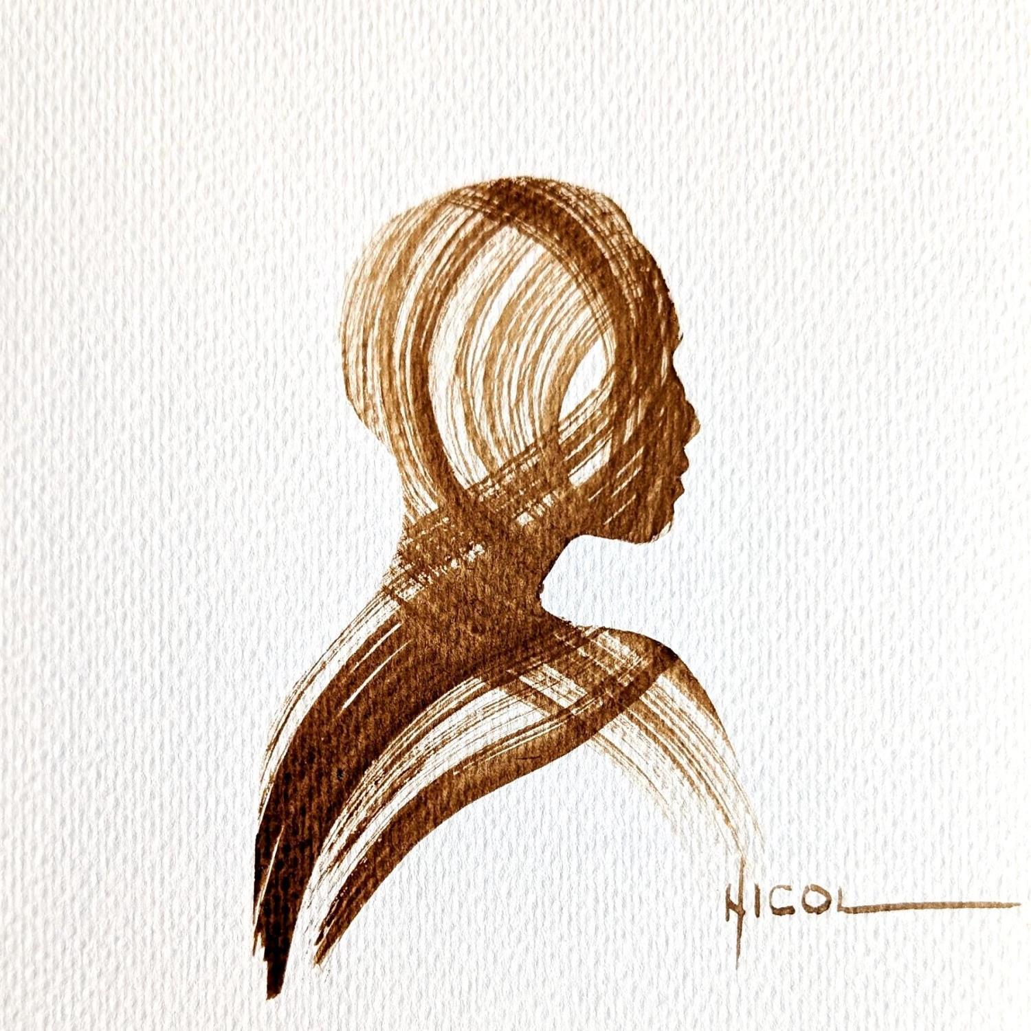 El artista utilizó la técnica Papel para crear esta pintura Pequeño formato sobre Papel de estilo Figurativo sobre los temas Minimalista, Blanco y negro, Retrato.