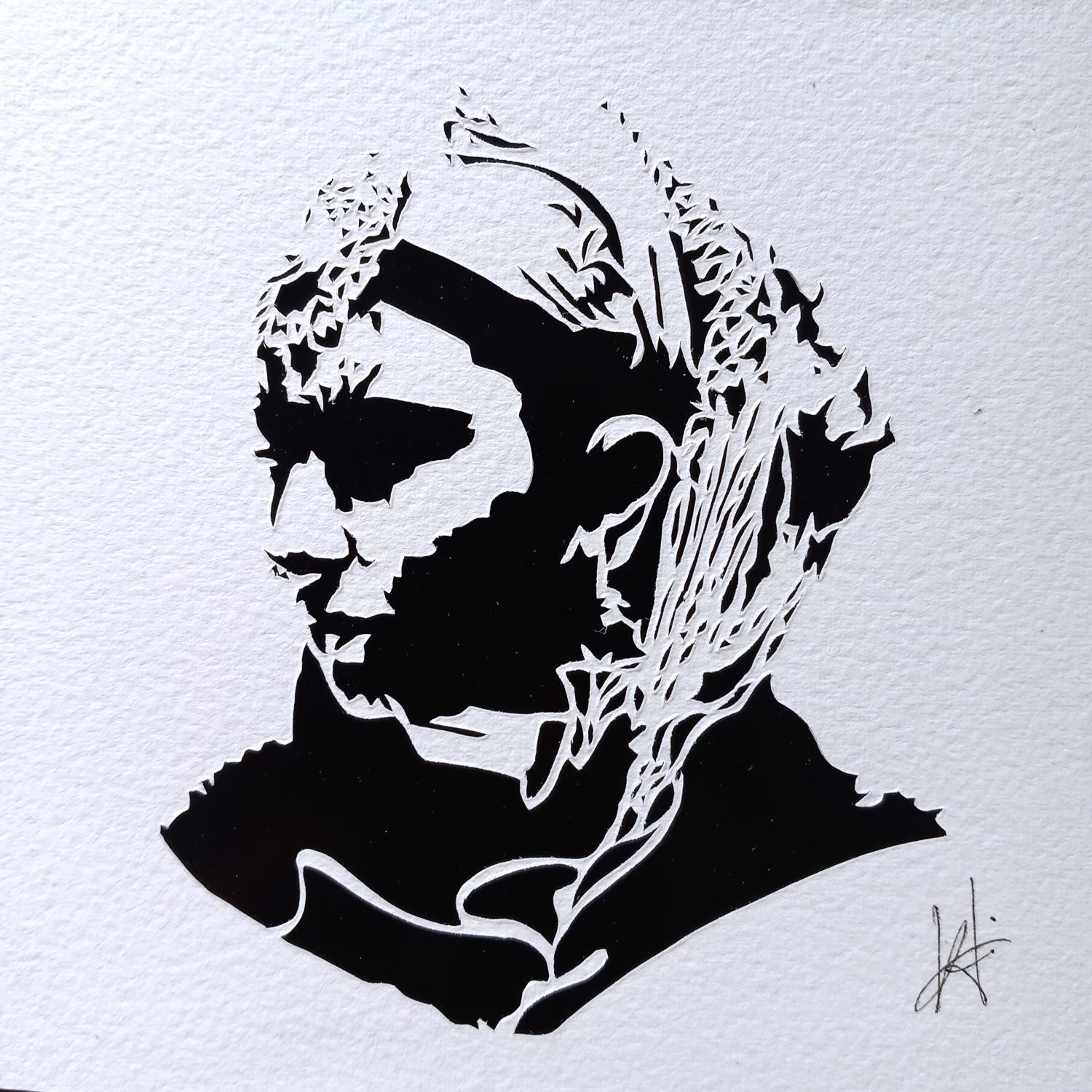 Valentine Louafi has always been fascinated by the play of shadows and lights. During her studies in film she made several short films in which silhouettes come to life. She also wrote and presented her thesis on this topic. After a detour in which she worked as a graphic designer, she decided to devote herself anew to her artistic practice, leaving drawing for paper art. The simplicity of the tools she uses and the subjects that she chooses perfectly align with her anti-consumerist and humanistic values. Her models come from all over the world and she specifically chooses subjects that enable her to question the relative notion of beauty, while also directing the spotlight onto modifications of the body and body-art. Today she is working with the organisation "The Paper Artist" that collaborates with organisations that support the emancipation of women. Curious about other people, she conceives of her canvases as an invitation to discover and create bridges in spite of differences.