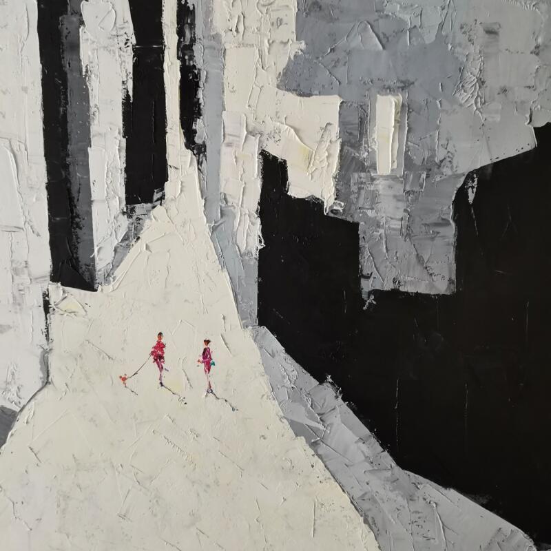 Pintura Viens avec moi por Tomàs | Pintura Impressionism Urbano Life style Aceite