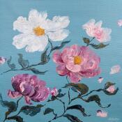 Esta obra de arte contemporáneo única y original, titulada «Belles pivoines» (Hermosas peonías), es obra de la artista contemporánea Amblard Florence. La artista ha utilizado diferentes técnicas para crear este cuadro de pequeño formato y estilo singular.
