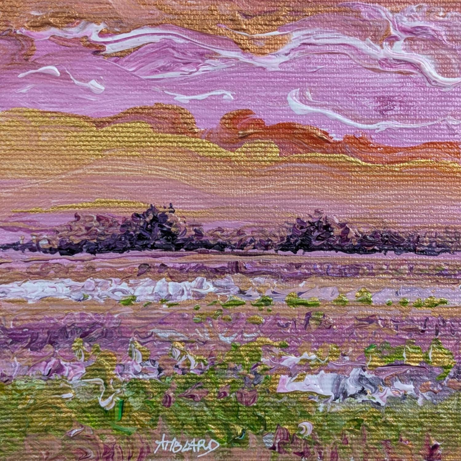 Esta obra de arte contemporáneo única y original, titulada «Bosque violeta en el horizonte», es obra del artista contemporáneo Amblard Florence. El artista ha utilizado diferentes técnicas para crear este cuadro de pequeño formato y estilo singular.