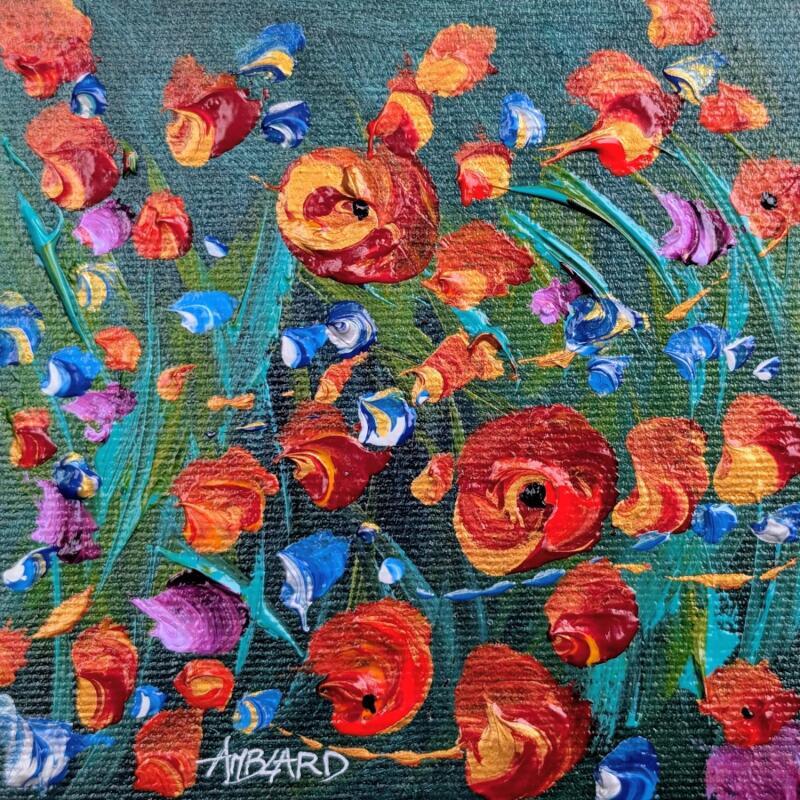 Esta obra de arte contemporáneo única y original, titulada «Petis coquelicots dorés» (Pequeñas amapolas doradas), es obra de la artista contemporánea Amblard Florence. La artista ha utilizado diferentes técnicas para crear esta pintura de pequeño formato y estilo singular.