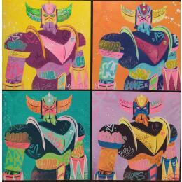 El artista utilizó las técnicas Acrílico, Graffiti para crear esta pintura Large formato sobre Tablero de lienzo de estilo Pop art sobre el tema Iconos pop.