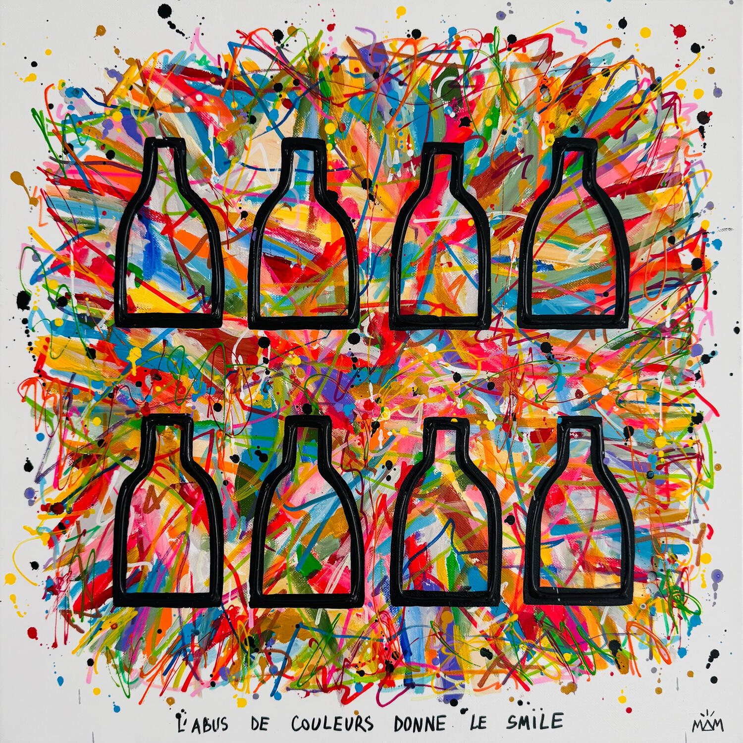 Esta obra de arte contemporáneo única y original "HAPPY BOTTLES" fue realizada por el artista contemporáneo Mam.