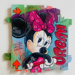 El artista utilizó las técnicas Acrílico, Madera, Posca para crear esta pintura Pequeño formato sobre Madera de estilo Pop art sobre el tema Iconos pop.