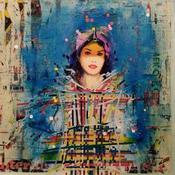 La fille du maharajahPintura La fille du maharajah por Vieux Thierry | Pintura Pop art Retrato Acrílico