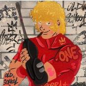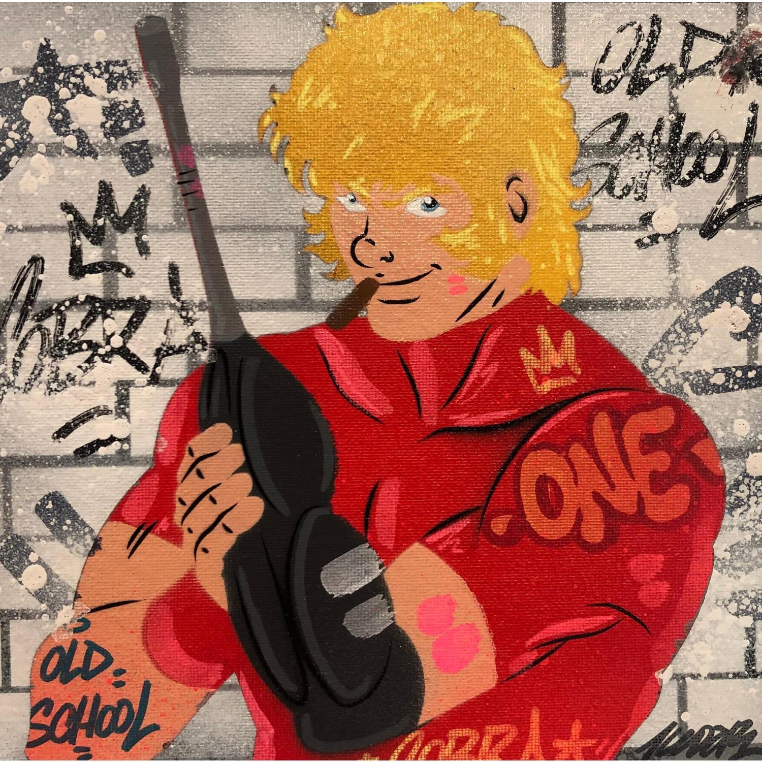 El artista utilizó las técnicas Posca, Graffiti para crear esta pintura Pequeño formato sobre Tablero de lienzo de estilo Pop art sobre el tema Iconos pop.