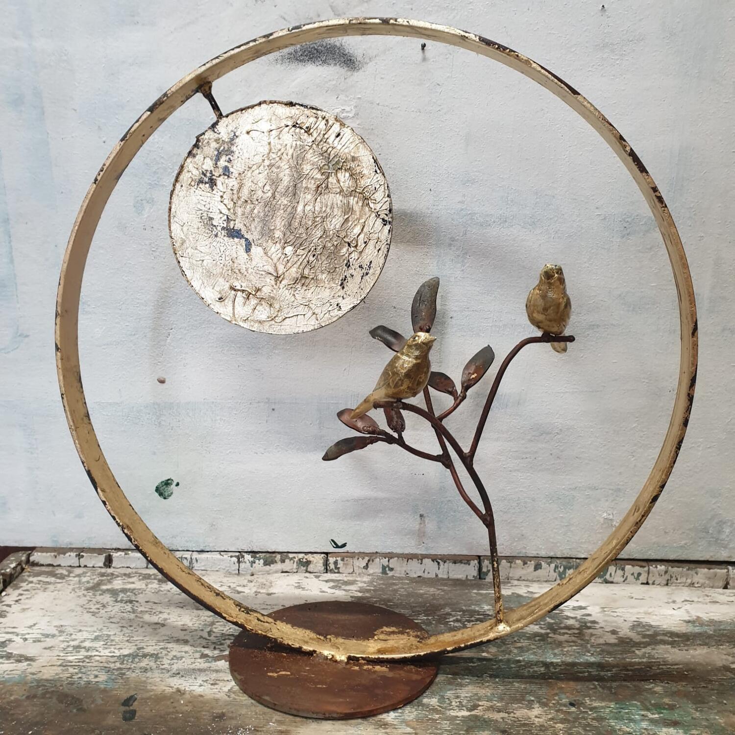 Esta obra de arte contemporáneo única y original "Oiseau sous la pleine lune" fue realizada por el artista contemporáneo Eres Nicolas. El artista utilizó la técnica Metal para crear esta escultura Pequeño formato en Metal de estilo Figurativo sobre el tema Animales.