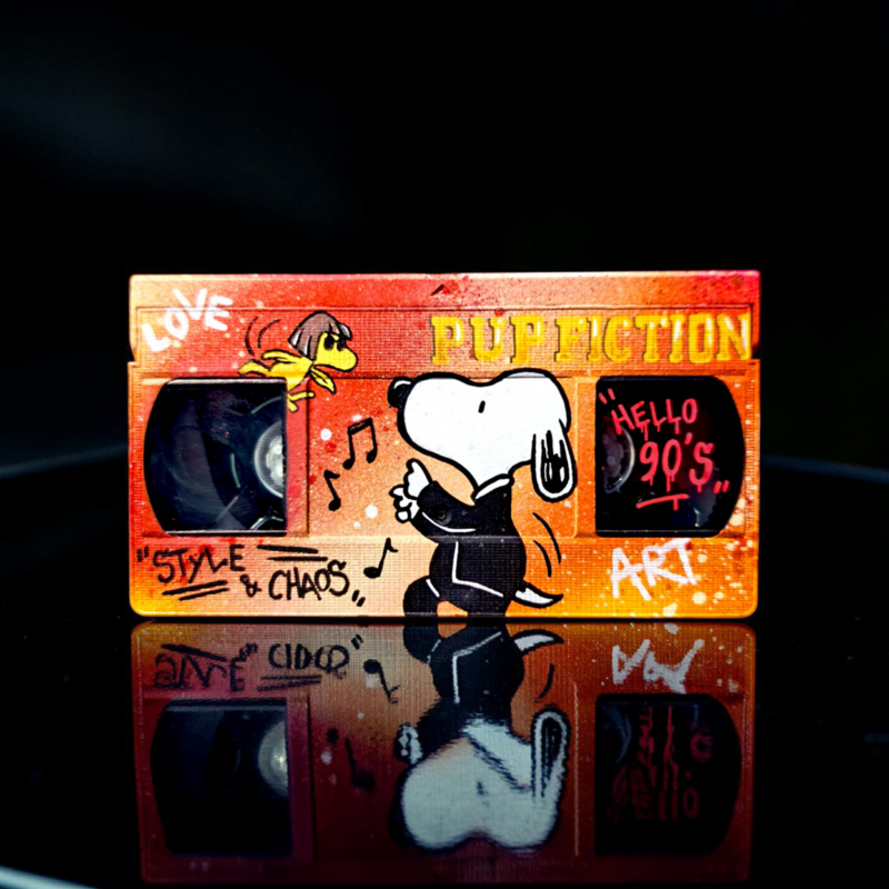 Esta obra de arte contemporáneo única y original "Pup fiction" fue realizada por el artista contemporáneo Rocky Chaplin.