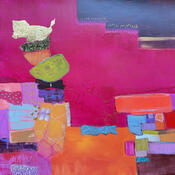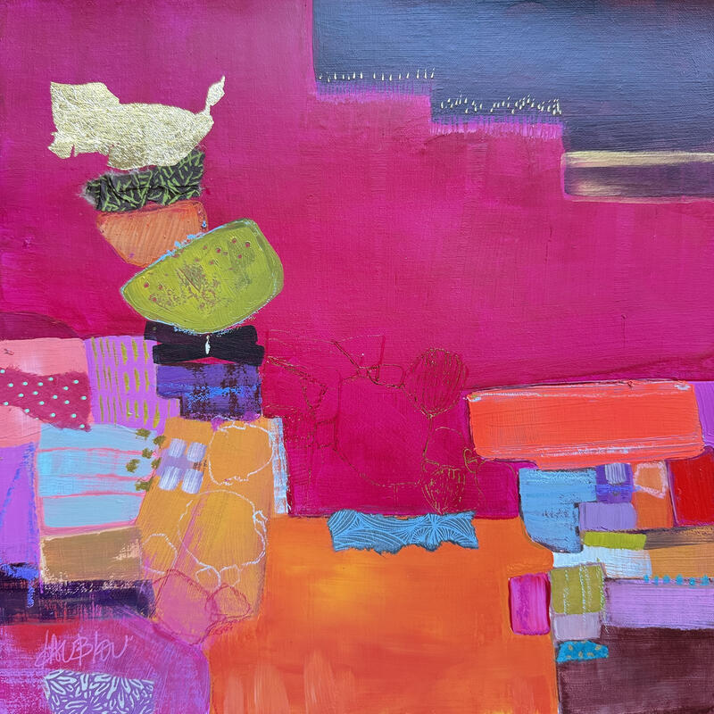 El artista utilizó las técnicas Acrílico, Cartón, Collage, Hoja de oro, Pastel para crear esta pintura Pequeño formato sobre Lienzo de estilo Abstracto.