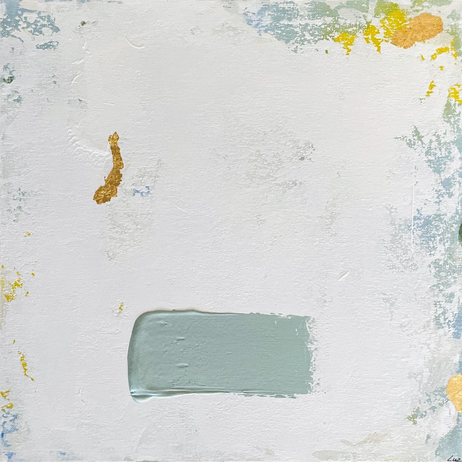 El artista utilizó las técnicas Acrílico, Hoja de oro para crear esta pintura Pequeño formato sobre Tablero de lienzo de estilo Abstracto sobre el tema Minimalista.