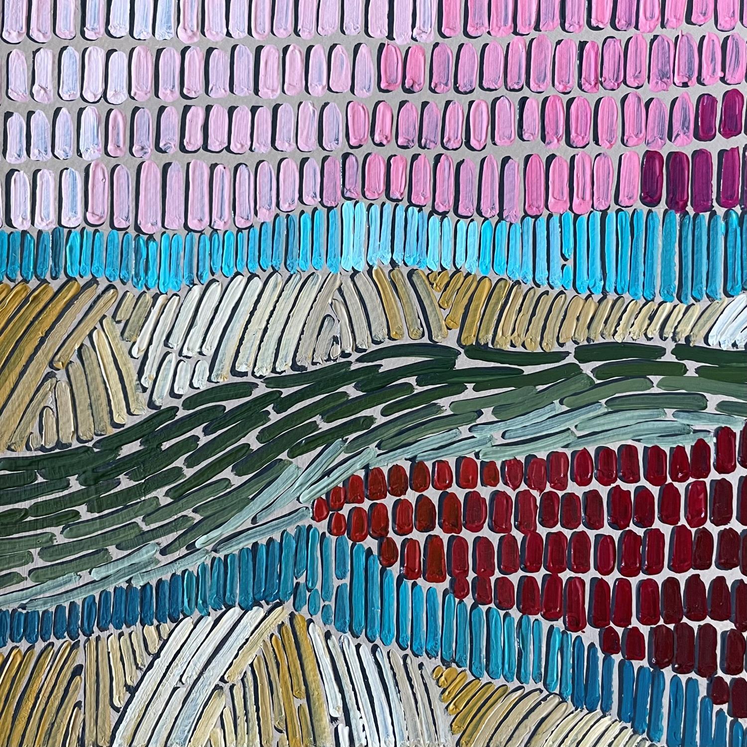 Daria Dmitrieva is an artist trained in the fine arts in Russia, specializing in textile design and tapestry techniques. Her works, often compared to embroideries, are characterized by meticulous attention to detail and nuance. Inspired by nature in all its forms, she seeks to convey emotions of happiness, harmony and tranquility through her creations. Daria adopts a technique akin to pointillism, using small strokes to capture the ephemeral beauty of landscapes and plants.