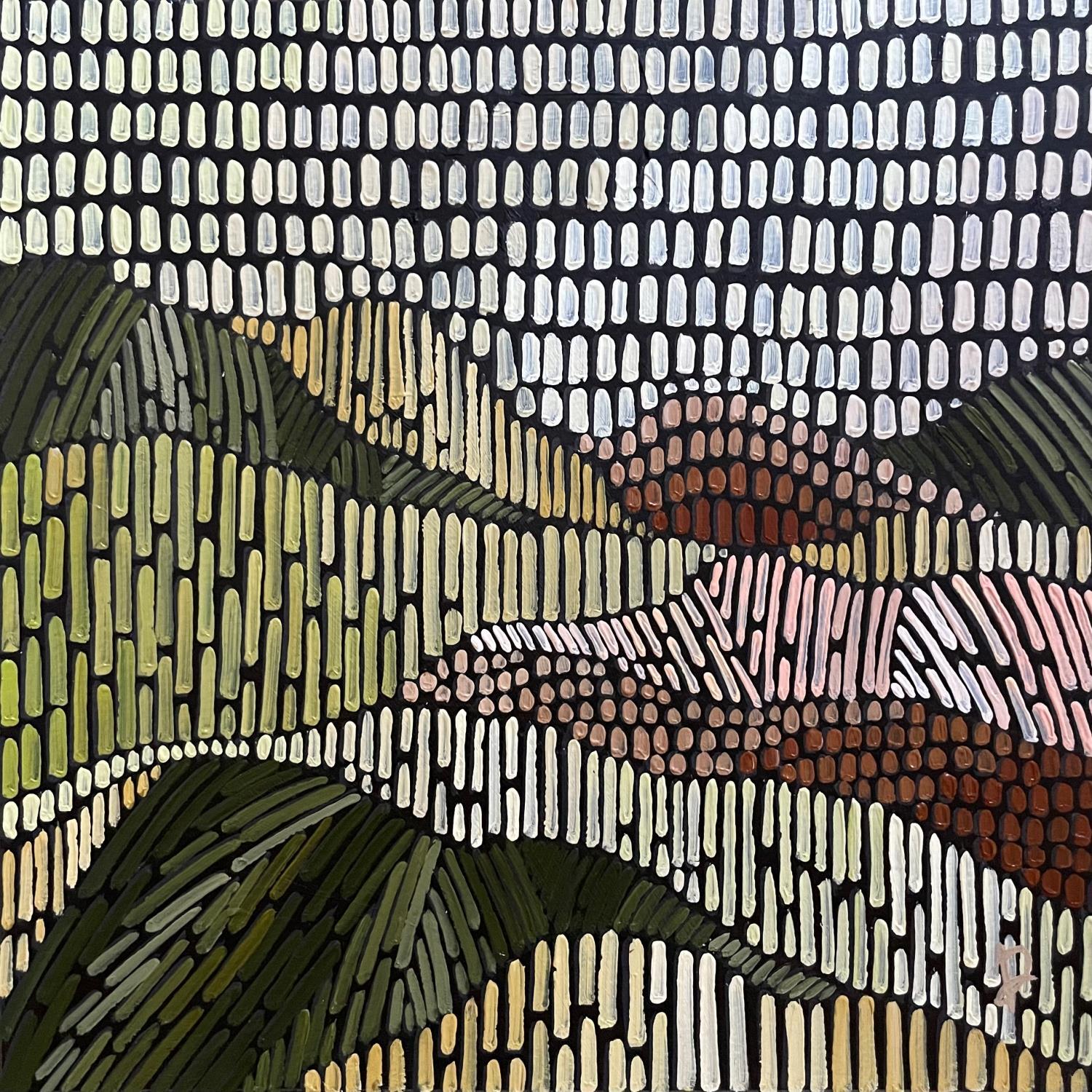 Daria Dmitrieva is an artist trained in the fine arts in Russia, specializing in textile design and tapestry techniques. Her works, often compared to embroideries, are characterized by meticulous attention to detail and nuance. Inspired by nature in all its forms, she seeks to convey emotions of happiness, harmony and tranquility through her creations. Daria adopts a technique akin to pointillism, using small strokes to capture the ephemeral beauty of landscapes and plants.