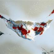 El artista utilizó las técnicas Acrílico, Ink para crear esta pintura Pequeño formato sobre Dibon de estilo Abstracto sobre el tema Naturaleza.