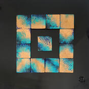 El artista utilizó la técnica Collage para crear esta pintura Pequeño formato sobre Dibon de estilo Abstracto sobre el tema Minimalista.