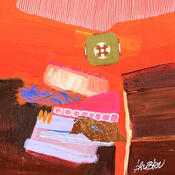 El artista utilizó las técnicas Hoja de oro, Pastel, Acrílico, Cartón, Collage para crear esta pintura Pequeño formato sobre Cartón de estilo Abstracto.
