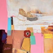 El artista utilizó las técnicas Pastel, Acrílico, Cartón, Collage, Hoja de oro para crear esta pintura Pequeño formato sobre Cartón de estilo Abstracto.