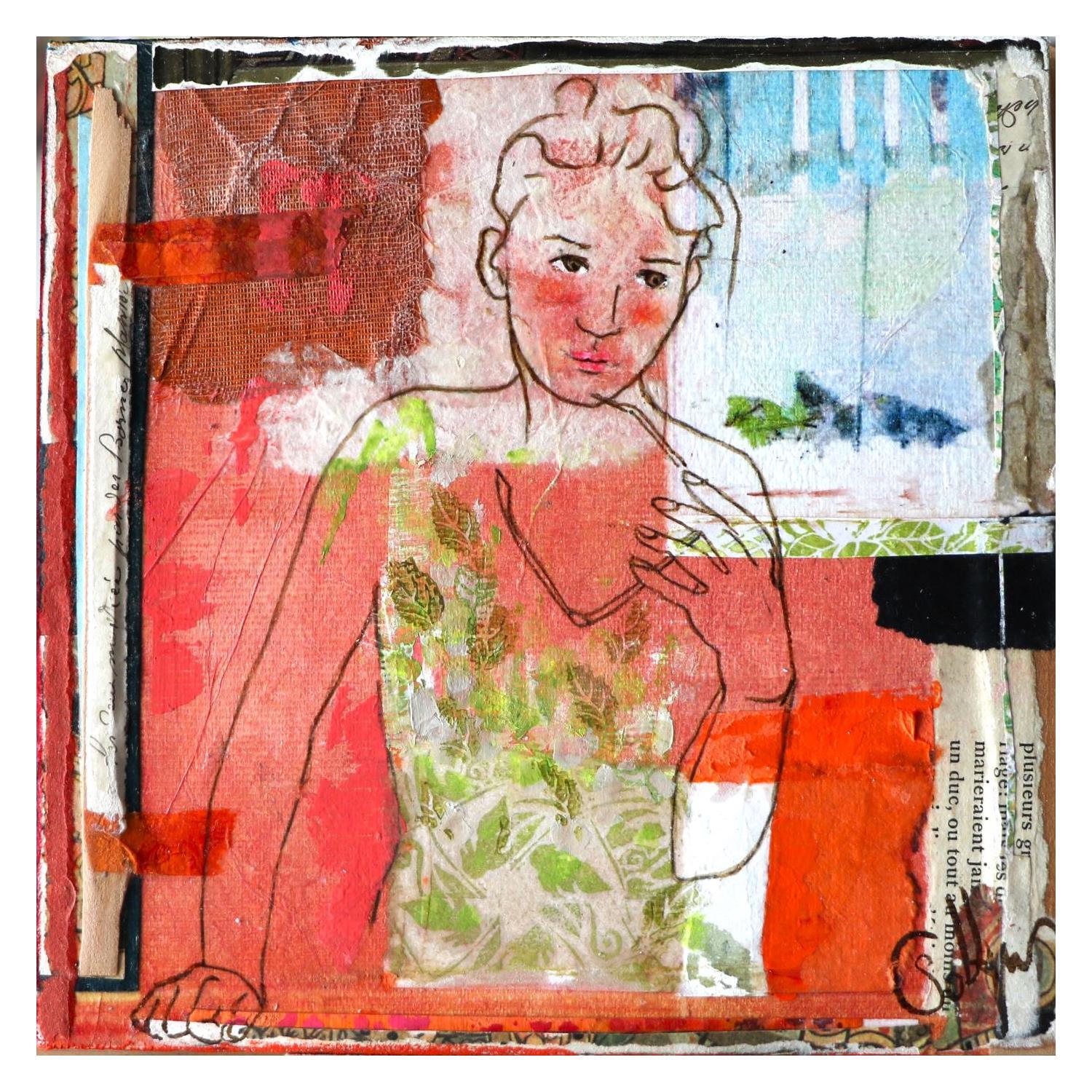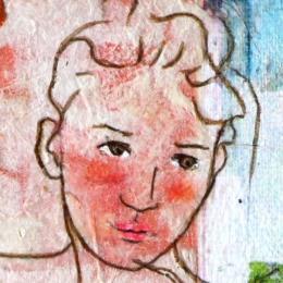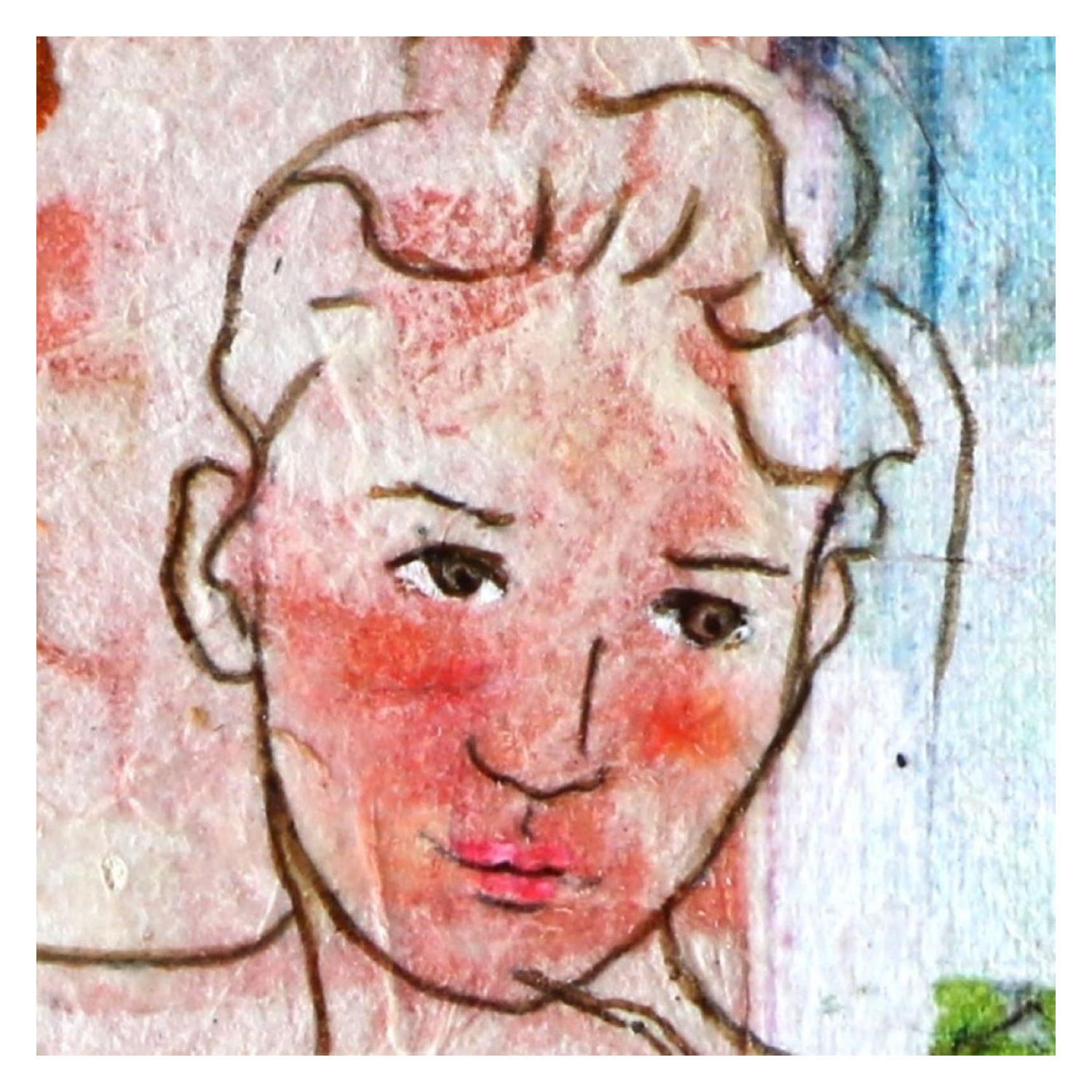El artista utilizó las técnicas Acrílico, Madera, Collage, Ink, Hoja de oro, Papel, Pastel, Pigmentos, Supraciclaje para crear esta pintura Pequeño formato sobre Lienzo de estilo Arte bruto sobre el tema Life style.