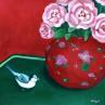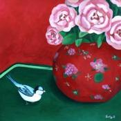 Esta obra de arte contemporáneo única y original "Oiseau et pivoine dans un vase chinoiserie" fue realizada por el artista contemporáneo Sally B.
