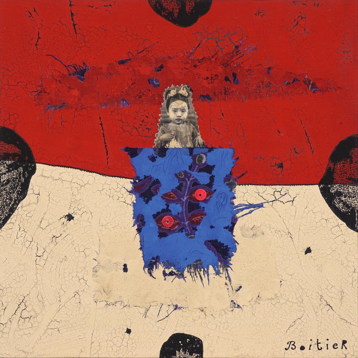 Very early on Thierry was attracted to painting and electronic music. His musical affinities took him into the world of musician Brian Eno, initiator of the "Ambient Music" concept. Discreet music, barely perceptible, designed to encourage and stimulate a quiet space for reflection, "ambient" became his "artistic catalyst". His passion for art led him to study applied graphic and fine arts, and textile design. The first glance at Thierry's paintings is almost inexorably on the photocopied vignettes of human figures found in all of his works. They act like a magnet and capture our attention. They attract us or repel us, but they are the heart of the composition. Stirring up remembrance, he strews improbable fragments of memories about his photographic cameo. These scattered milestones organize to recreate harmony, seeking a possible timeless and universal balance.