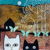 El artista utilizó la técnica Acrílico para crear esta pintura Pequeño formato sobre Papel de estilo Arte naïf sobre los temas Paisajes, Animales.