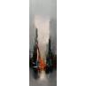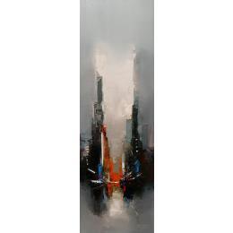 Daniel Castan has conserved his working discipline, a taste for urgent situations and a passion for megalopolises from his first career path as a graphic designer. It was during this time that Daniel travelled extensively in New York and Hong Kong and developed a fascination with the urban world and its larger-than-life perspectives, and now he recreates these graphic ambiances in his painting. A graduate in fine arts, he finally decided in his forties to satisfy his need to create. Not worrying about useless reflections, Daniel Castan maintains a relationship marked by physicality in his paintings. His perspective is one of a distance runner who trains for many hours a day and obstinately moves forward. Only colour and the material count for him and he effectively maintains a power relationship with the canvas: he never waits for an illusionary inspiration, his works are born out of work and perseverance.