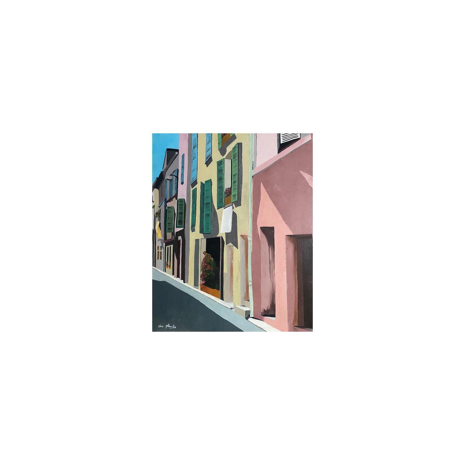 Anne Du Planty is an artist from the north of France, who found her true inspiration in the colors and light of the South. A graduate in applied arts and interior architecture, she turned to painting, a passion that has guided her since a very early age. Her figurative style, marked by pronounced contrasts and a sunny palette, invites the viewer to wander through her canvases, where every alleyway and every scene of life captivates with its realism and warmth.