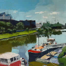 El artista utilizó la técnica Aceite para crear esta pintura Pequeño formato sobre Tablero de lienzo de estilo Figurativo sobre los temas Arquitectura, Urbano.