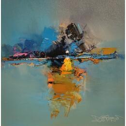 Daniel Castan has conserved his working discipline, a taste for urgent situations and a passion for megalopolises from his first career path as a graphic designer. It was during this time that Daniel travelled extensively in New York and Hong Kong and developed a fascination with the urban world and its larger-than-life perspectives, and now he recreates these graphic ambiances in his painting. A graduate in fine arts, he finally decided in his forties to satisfy his need to create. Not worrying about useless reflections, Daniel Castan maintains a relationship marked by physicality in his paintings. His perspective is one of a distance runner who trains for many hours a day and obstinately moves forward. Only colour and the material count for him and he effectively maintains a power relationship with the canvas: he never waits for an illusionary inspiration, his works are born out of work and perseverance.