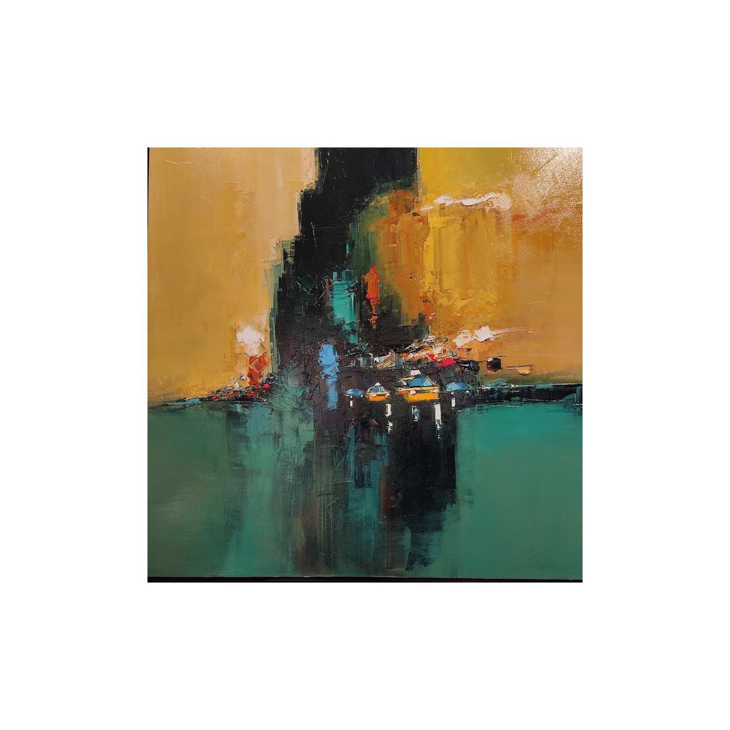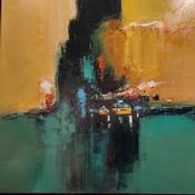 Daniel Castan has conserved his working discipline, a taste for urgent situations and a passion for megalopolises from his first career path as a graphic designer. It was during this time that Daniel travelled extensively in New York and Hong Kong and developed a fascination with the urban world and its larger-than-life perspectives, and now he recreates these graphic ambiances in his painting. A graduate in fine arts, he finally decided in his forties to satisfy his need to create. Not worrying about useless reflections, Daniel Castan maintains a relationship marked by physicality in his paintings. His perspective is one of a distance runner who trains for many hours a day and obstinately moves forward. Only colour and the material count for him and he effectively maintains a power relationship with the canvas: he never waits for an illusionary inspiration, his works are born out of work and perseverance.