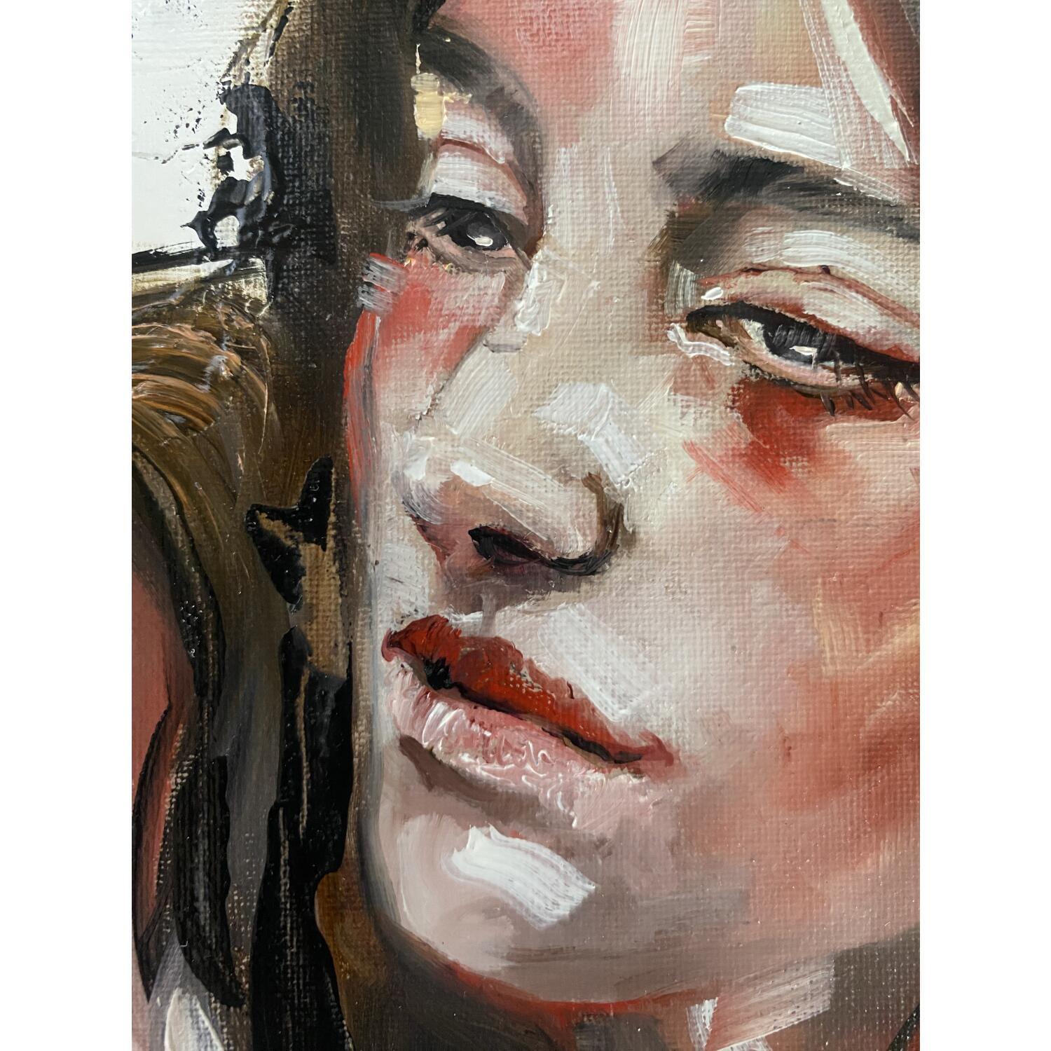 El artista utilizó las técnicas Aceite, Acrílico para crear esta pintura Pequeño formato sobre Lienzo de estilo Figurativo sobre el tema Retrato.
