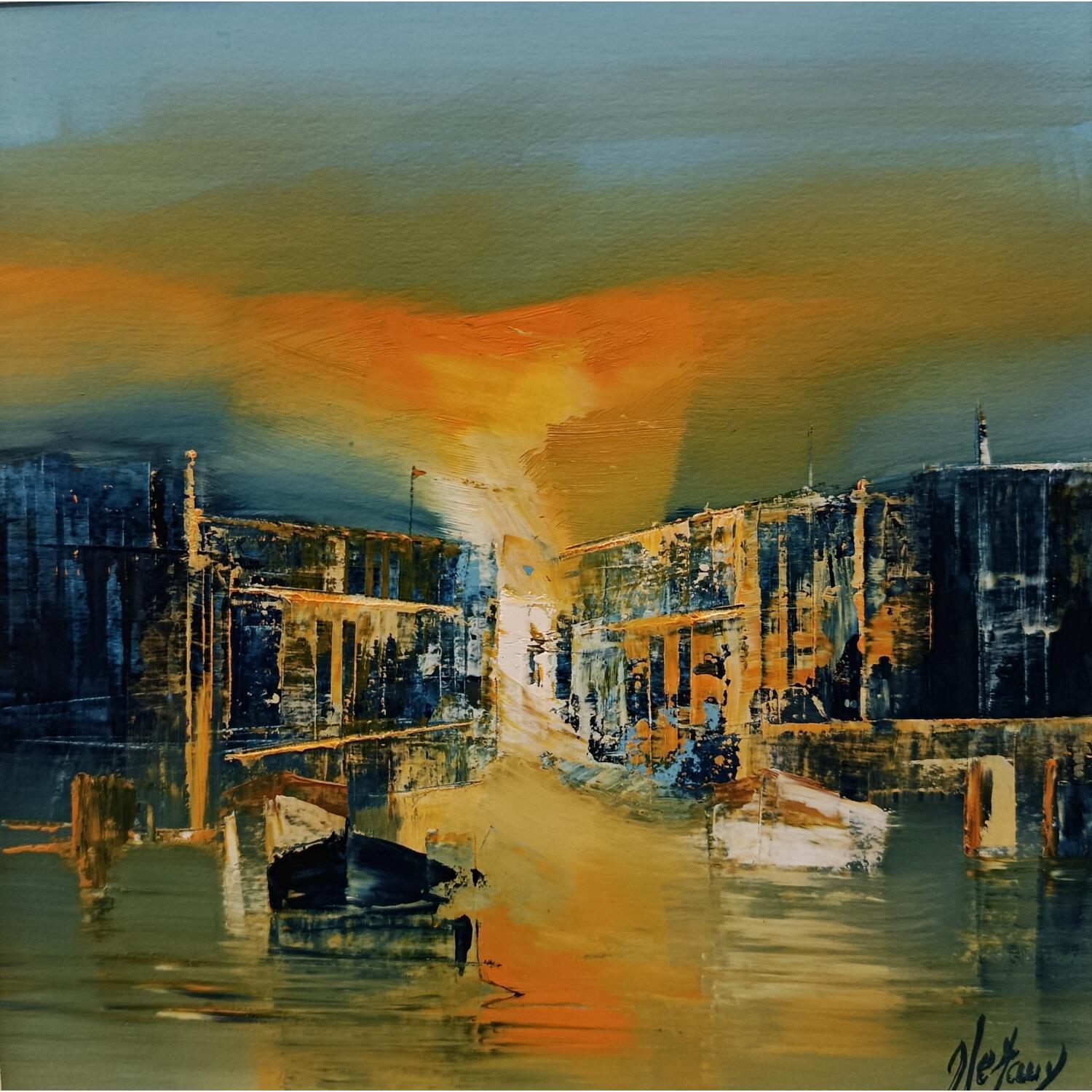 Esta obra de arte contemporáneo única y original "Ciel orange" fue realizada por el artista contemporáneo Héraud Alain. El artista utilizó la técnica Aceite para crear esta pintura Pequeño formato sobre Lienzo de estilo Figurativo sobre el tema Marine.