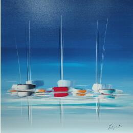 El artista utilizó las técnicas Aceite, Acrílico para crear esta pintura Large formato de estilo Figurativo sobre el tema Marine.