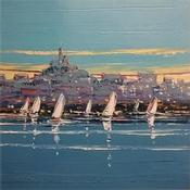 El artista utilizó la técnica Aceite para crear esta pintura Pequeño formato sobre Cartón de estilo Figurativo sobre los temas Marine, Paisajes.