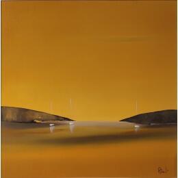 El artista utilizó la técnica Aceite para crear esta pintura Pequeño formato sobre Papel de estilo Figurativo sobre los temas Marine, Minimalista.