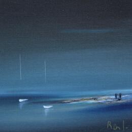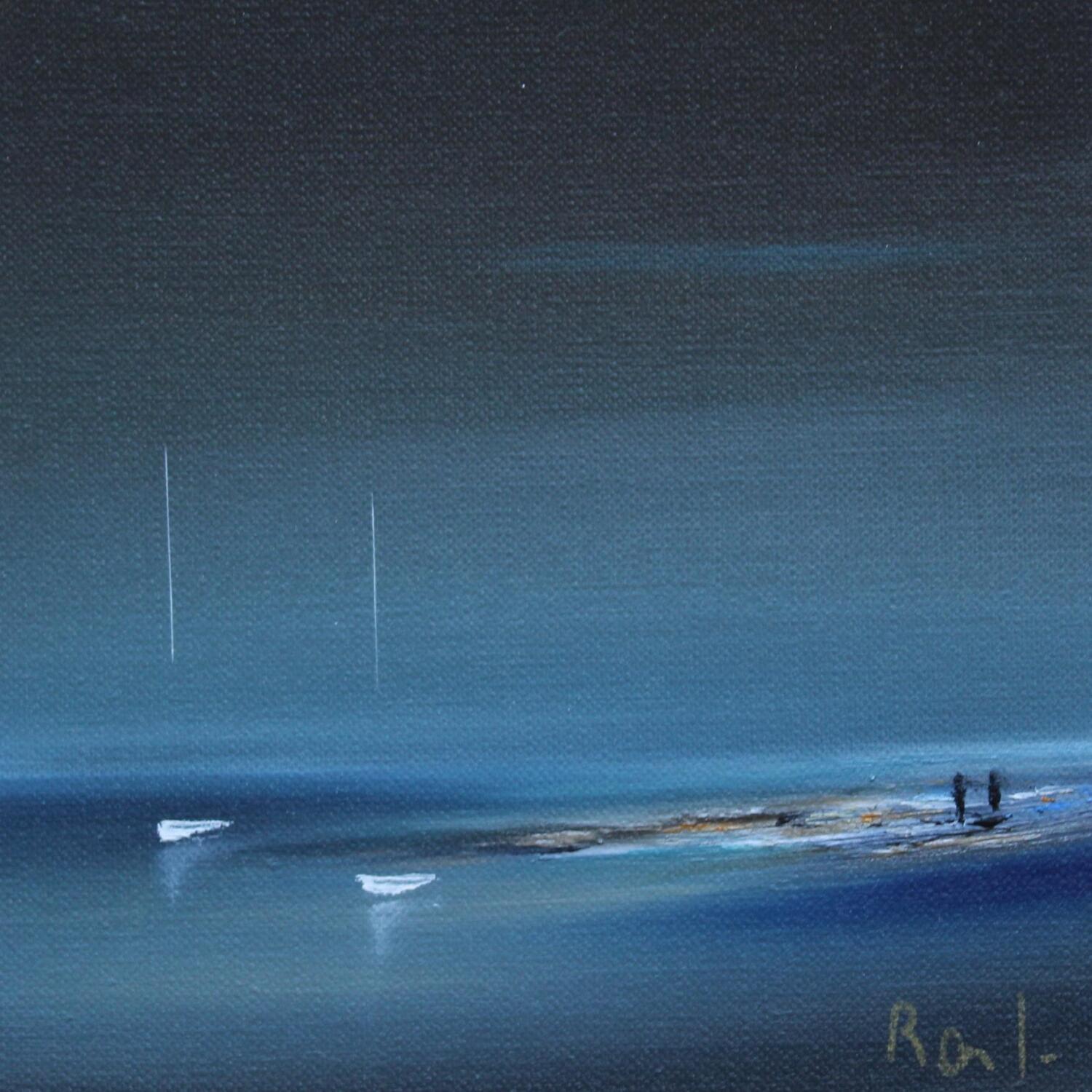 El artista utilizó la técnica Aceite para crear esta pintura Pequeño formato sobre Papel de estilo Figurativo sobre los temas Minimalista, Marine.