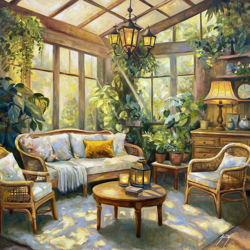 Esta obra de arte contemporáneo única y original, titulada «Salon d'hiver» (Salón de invierno), es obra del artista contemporáneo Jung François. El artista ha utilizado la técnica del óleo para crear este cuadro de gran formato sobre lienzo de estilo figurativo.