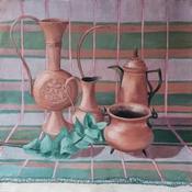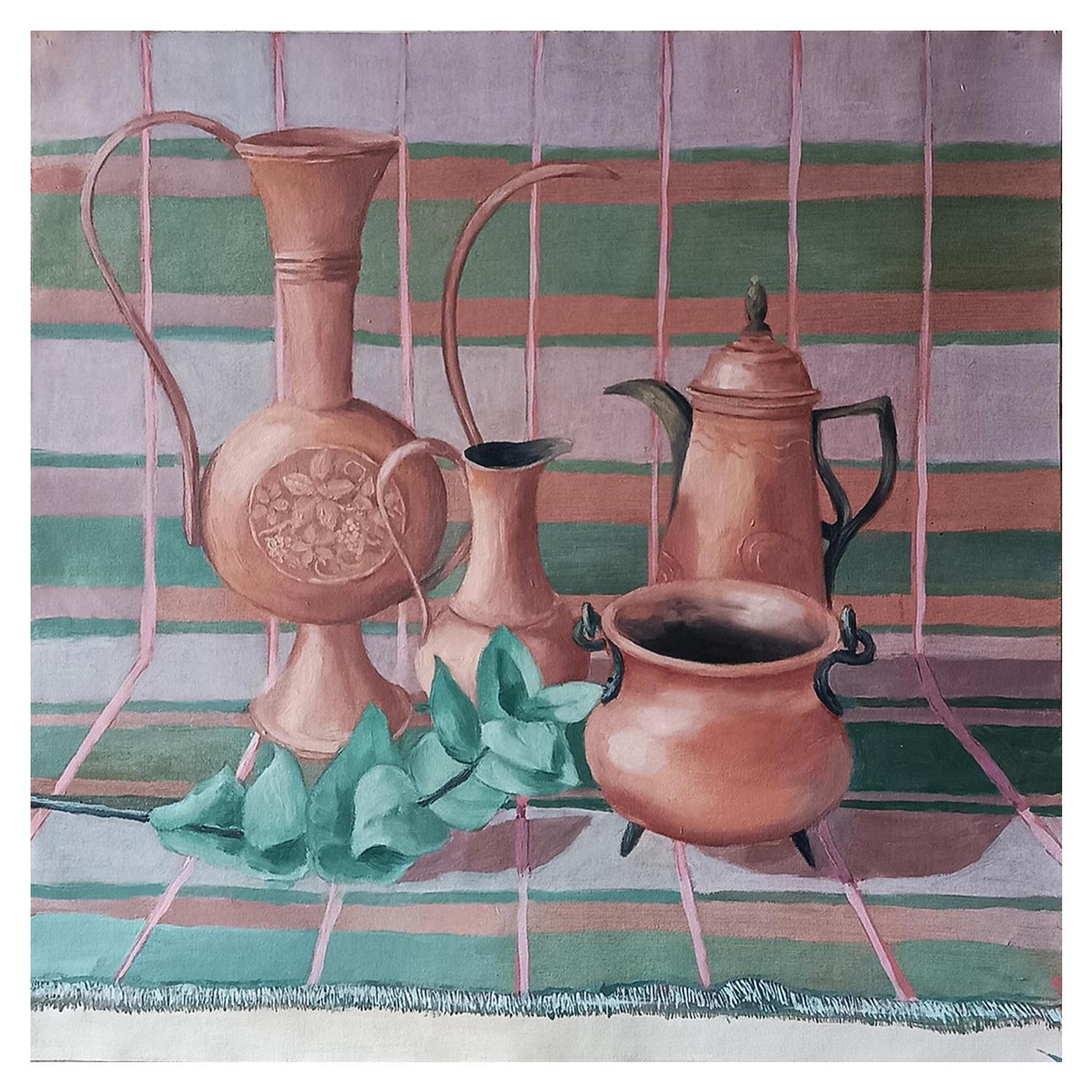 El artista utilizó la técnica Aceite para crear esta pintura Pequeño formato sobre Lienzo de estilo Figurativo sobre el tema Naturalezas muertas.