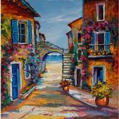 Esta obra de arte contemporáneo única y original "Passerelle dans la vieille ruelle fleurie" fue realizada por el artista contemporáneo Cédanne.