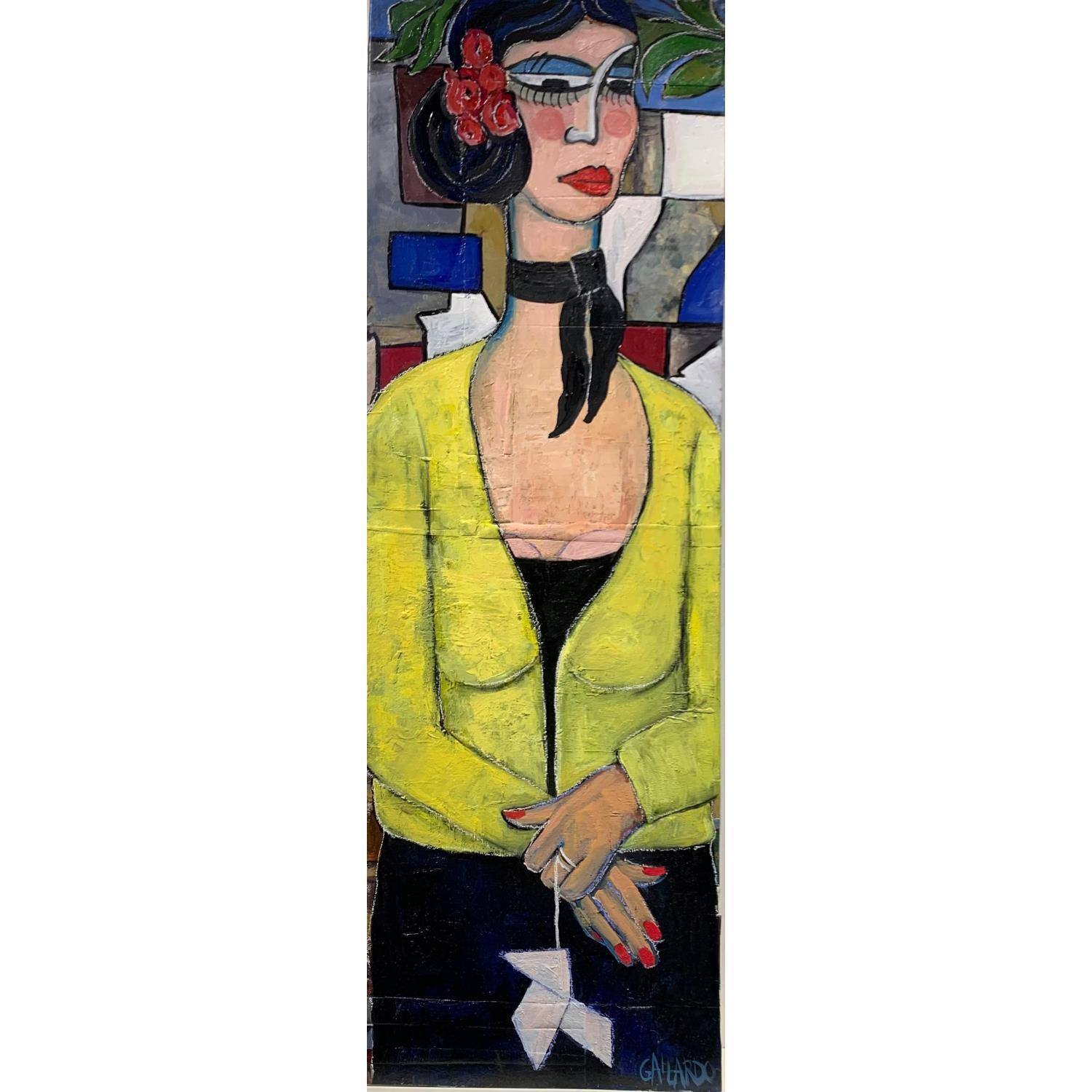 Mercedes grew up in Malaga where she began her art studies. When she moved to Barcelona, she continued her education with professional artists such as Manolo Hugué (sculpture and glazing) and Manuel Massana (drawing and painting). In school, she took various courses on the techniques of stained glass, primitive art, engraving, sacred symbols and the history of art. She specialized in contemporary art and decided to turn her passion into her profession. In 2006, she opened her own gallery in Cadaqués, the Gallardo Art Space. The world described in her paintings is a colourful and lively world that she approaches head-on with close-up faces (mostly women) or landscapes that are largely inspired from where she now lives (Cadaqués).