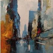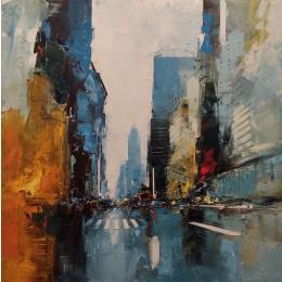 Daniel Castan has conserved his working discipline, a taste for urgent situations and a passion for megalopolises from his first career path as a graphic designer. It was during this time that Daniel travelled extensively in New York and Hong Kong and developed a fascination with the urban world and its larger-than-life perspectives, and now he recreates these graphic ambiances in his painting. A graduate in fine arts, he finally decided in his forties to satisfy his need to create. Not worrying about useless reflections, Daniel Castan maintains a relationship marked by physicality in his paintings. His perspective is one of a distance runner who trains for many hours a day and obstinately moves forward. Only colour and the material count for him and he effectively maintains a power relationship with the canvas: he never waits for an illusionary inspiration, his works are born out of work and perseverance.
