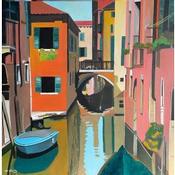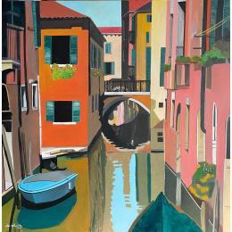 Esta obra de arte contemporáneo única y original "Venise au bateau bleu" fue realizada por el artista contemporáneo Du Planty Anne.