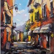 Pintura Down to lake Como por Joro | Pintura Figurativo Urbano Aceite