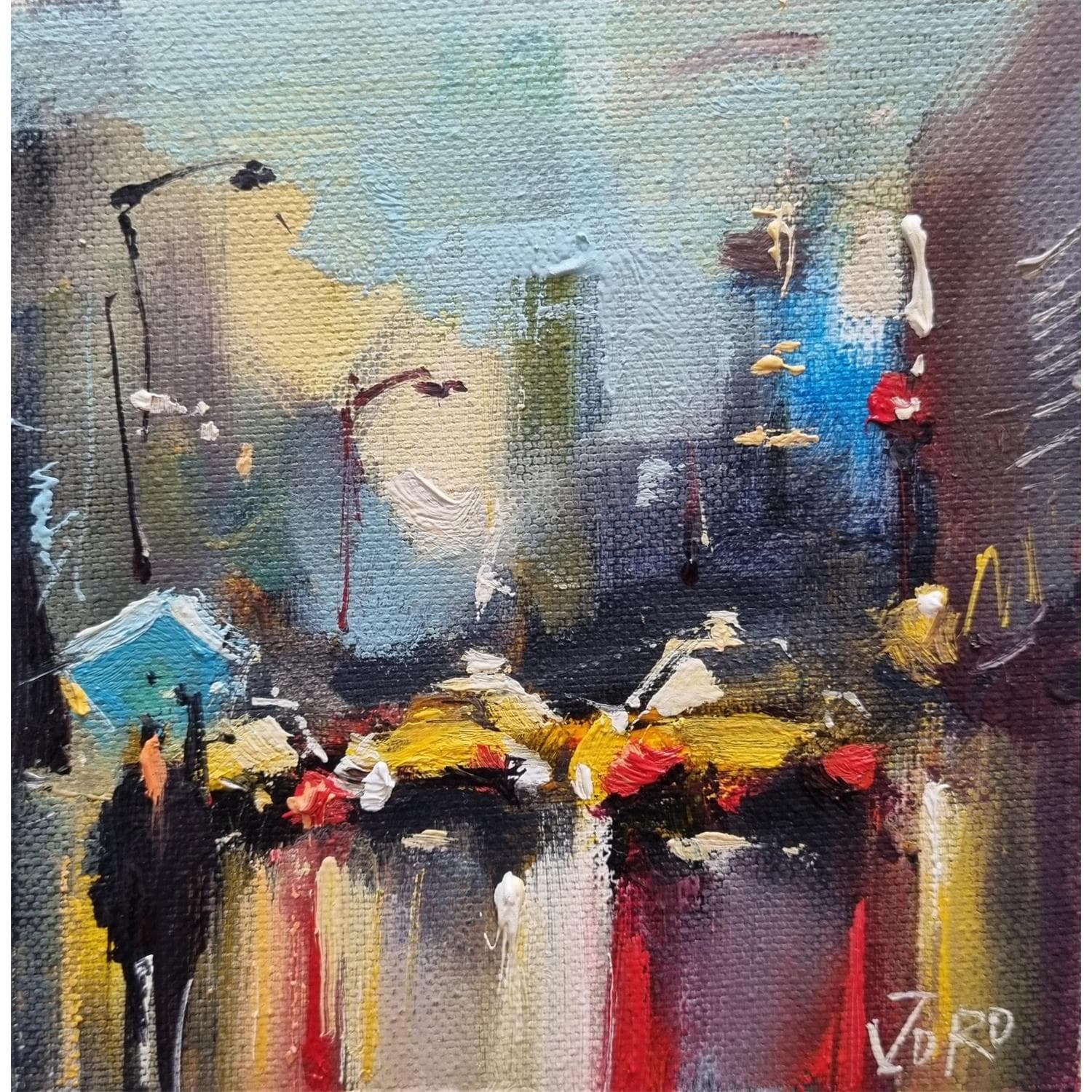 Esta obra de arte contemporáneo única y original "rainy street" fue realizada por el artista contemporáneo Joro.