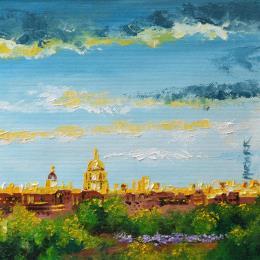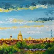 El artista utilizó la técnica Aceite para crear esta pintura Pequeño formato sobre Lienzo de estilo Figurativo sobre el tema Urbano.
