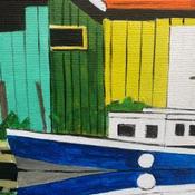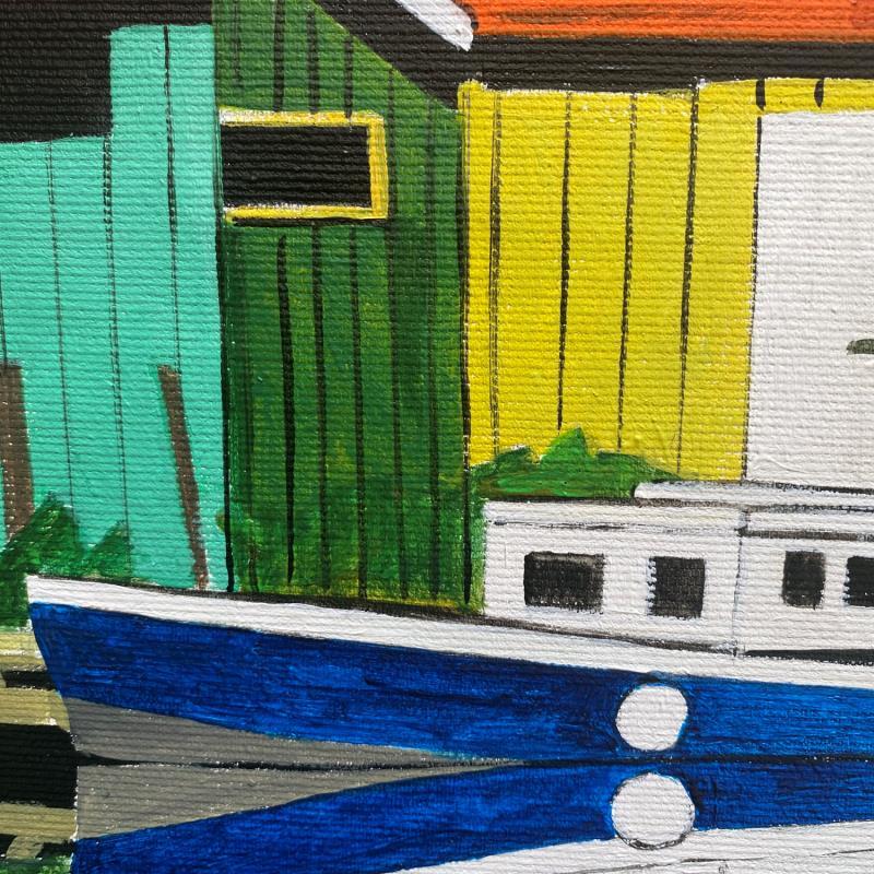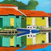 Esta obra de arte contemporáneo única y original "Les cabanes et le bateau" fue realizada por el artista contemporáneo Du Planty Anne.
