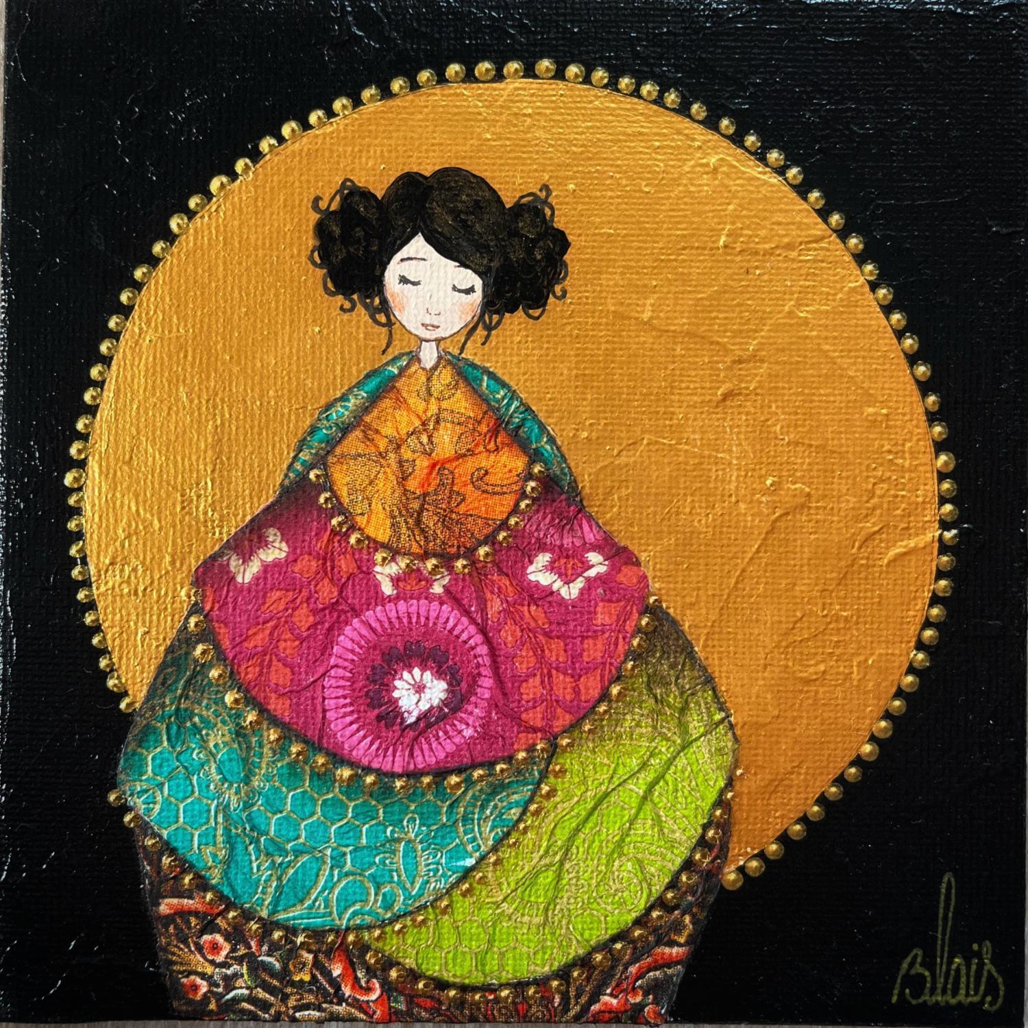 El artista utilizó las técnicas Acrílico, Collage para crear esta pintura Pequeño formato sobre Tablero de lienzo de estilo Figurativo.