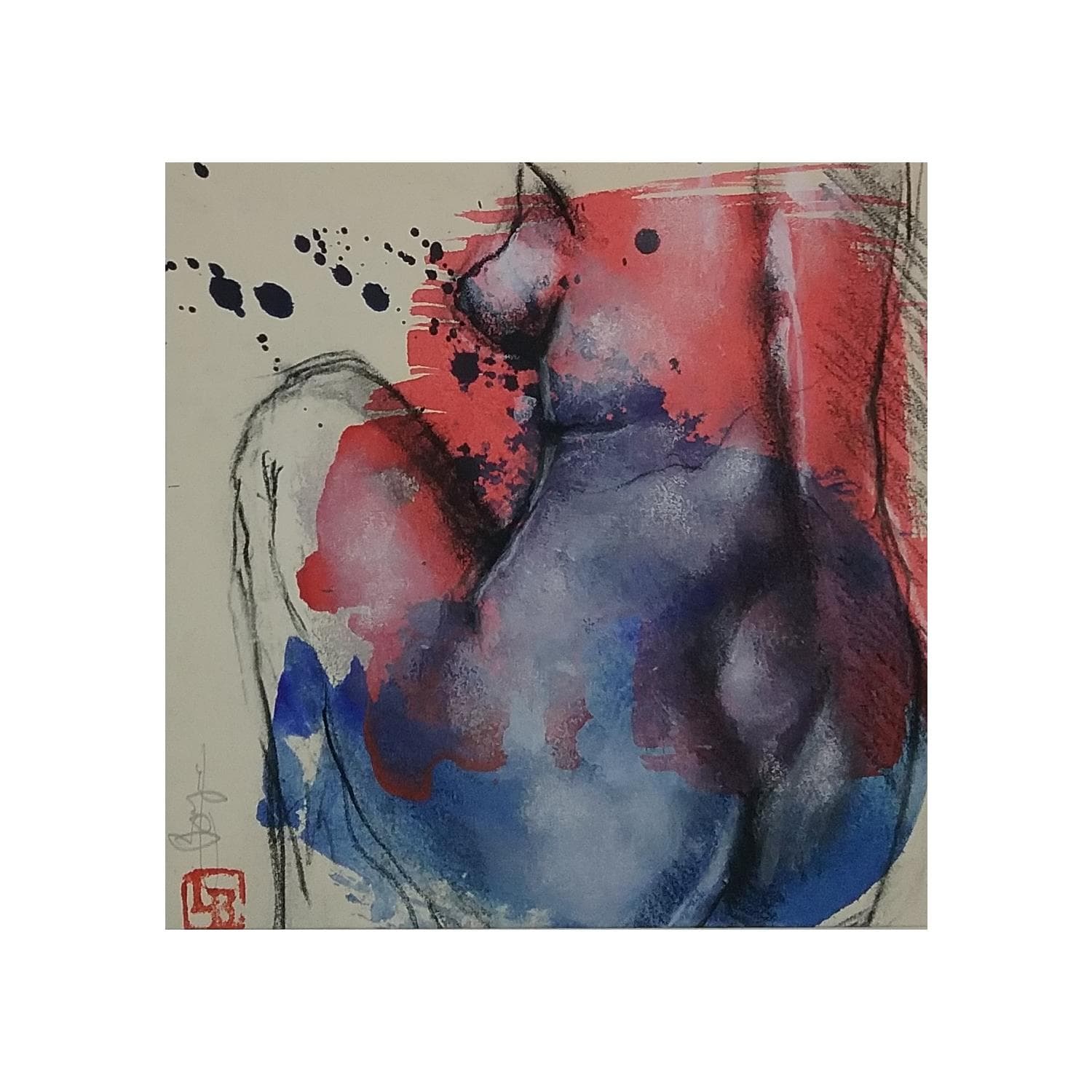 El artista utilizó la técnica Acrílico para crear esta pintura Pequeño formato sobre Papel de estilo Figurativo sobre el tema Desnudo.