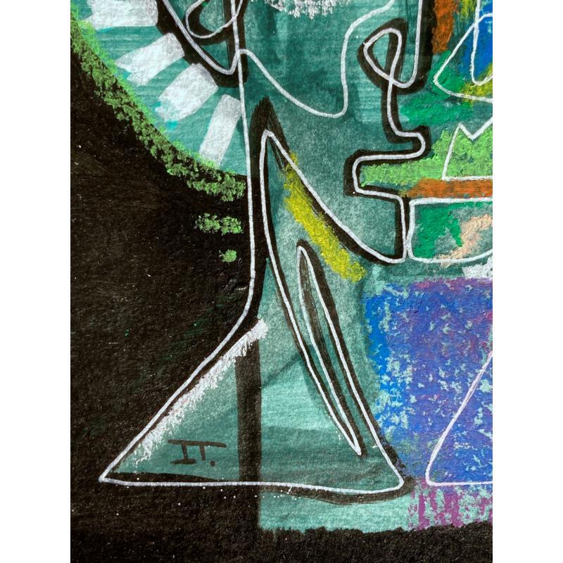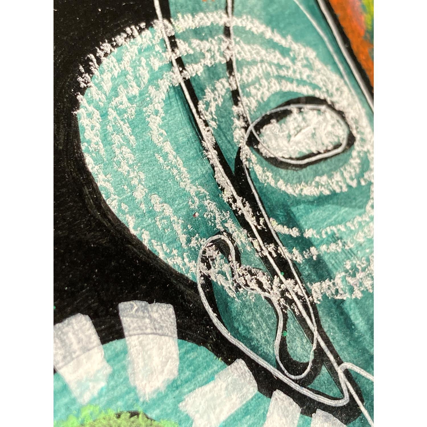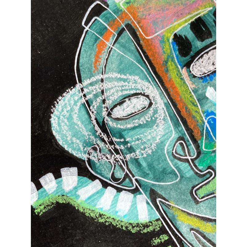 El artista utilizó las técnicas Acrílico, Pastel, Posca para crear esta pintura Pequeño formato sobre Papel de estilo Figurativo sobre los temas Música, Retrato, Urbano.