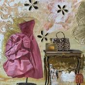 El artista utilizó las técnicas Acrílico, Collage, Papel, Pastel para crear esta pintura Pequeño formato sobre Tablero de lienzo de estilo Figurativo sobre el tema Mode.